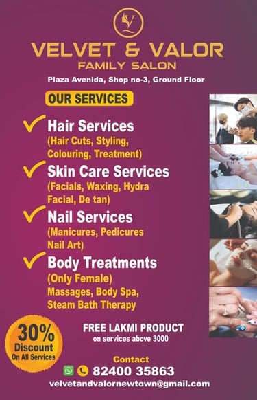 At Velvet & Valor Family Salon in New Town, we specialize in professional haircuts and advanced hair treatments tailored to your style and hair type. Whether you're looking for a trendy haircut, a classic trim, or a complete hair makeover, our experienced hair stylists are here to craft the perfect look for you.